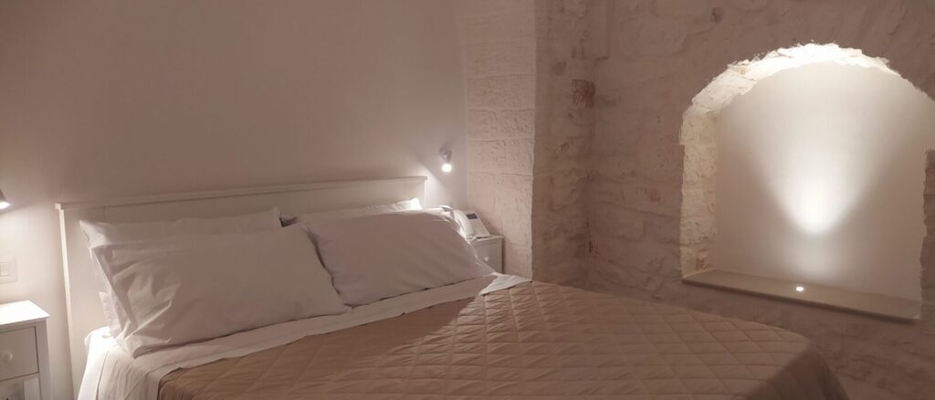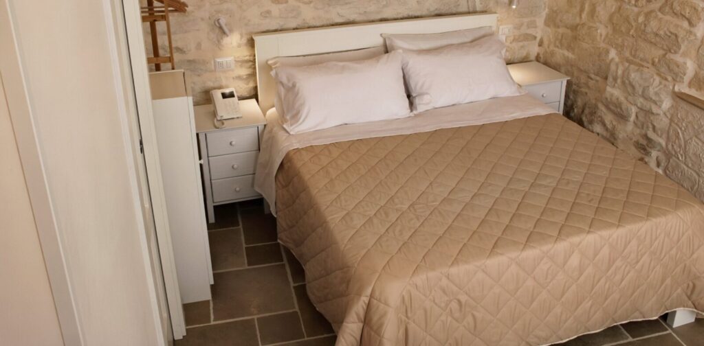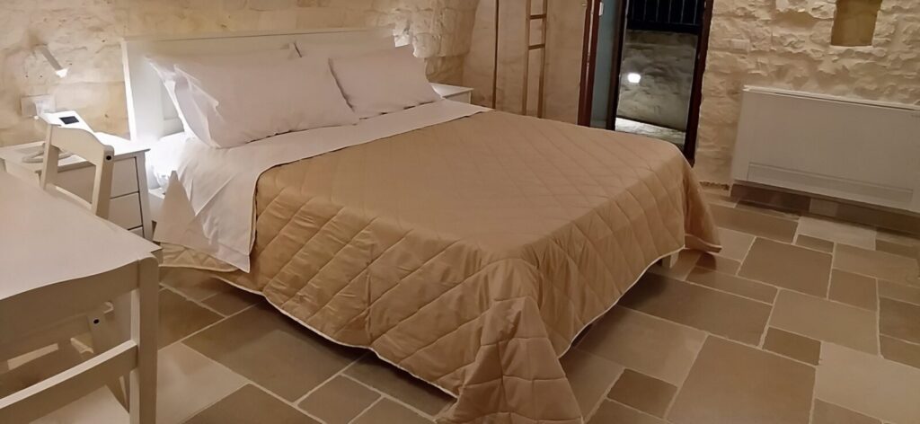 Incantevole stanza matrimoniale, caratterizzata dalla suggestiva volta a cummersa. Stanza perfetta per uso singolo o per una coppia. Con un comodo letto matrimoniale, bagno privato e connessione Wi-Fi gratuita, questo ambiente unisce tradizione e modernità per un soggiorno indimenticabile.