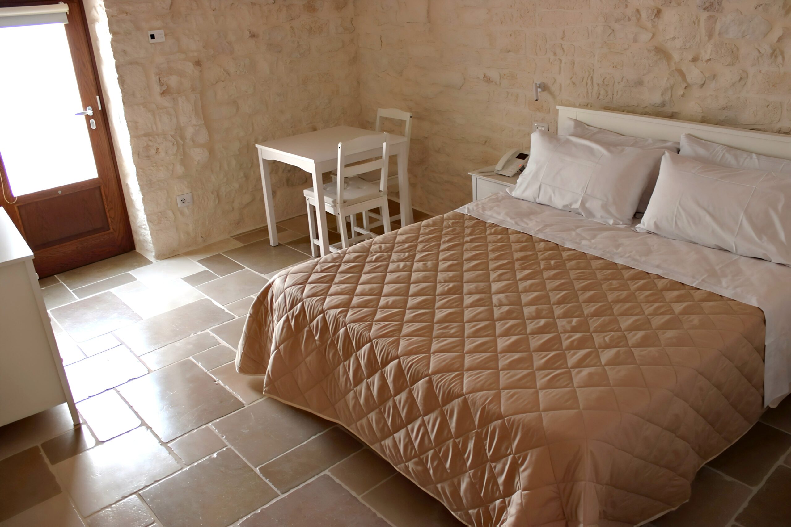 Deliziosa stanza matrimoniale, sapientemente arredata e completa di tutti i comfort moderni. Qui troverai un accogliente letto matrimoniale, un bagno privato e connessione Wi-Fi gratuita. Caratterizzata da una suggestiva volta a stella in pietra, questa stanza offre un’esperienza unica e raffinata per il tuo soggiorno.